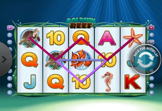 Dolphin Reef er en 5-hjuls, 3-raders spilleautomat med opptil 20 justerbare gevinstlinjer utviklet av Playtech. Spillets hovedfunksjon er Expanding Sticky Wilds, som aktiveres når delfin-wilds lander samtidig på hjul 2 og 4, og utløser 5 free spins med to fullstendig wild-låste hjul. Wilds erstatter alle symboler, inkludert scatter, mens skattekistesymbolet gir spredte utbetalinger uten å starte bonusrunder. Automaten har en RTP på 95,23 %, middels volatilitet og en maksimal utbetaling på 5000 ganger innsatsen, noe som gjør den til en klassisk, lettspilt slot med et solid gevinstpotensial i bonusmodusen.
