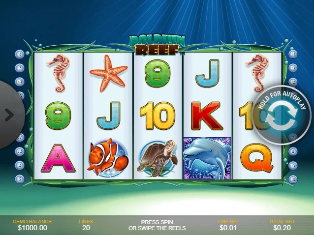 Dolphin Reef ønsker deg velkommen med et rolig undervannstema. Det føles som å dykke ned i et stille rev der solstrålene bryter gjennom det blå vannet. Symbolene setter stemningen: lekne klovnefisker, langsomme skilpadder, nysgjerrige sjøhester og glitrende sjøstjerner – sammen med en skjellgrodd skattekiste og selvfølgelig den karismatiske delfinen som fungerer som spillets Wild.
