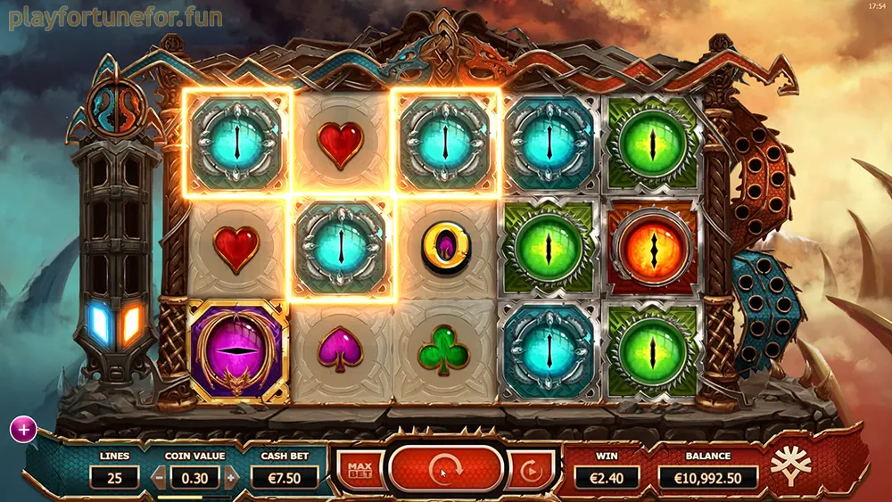 Hodet på den røde dragen legger til 2 – 3 ekstra Wilds til tilfeldig valgte celler på skjermen;