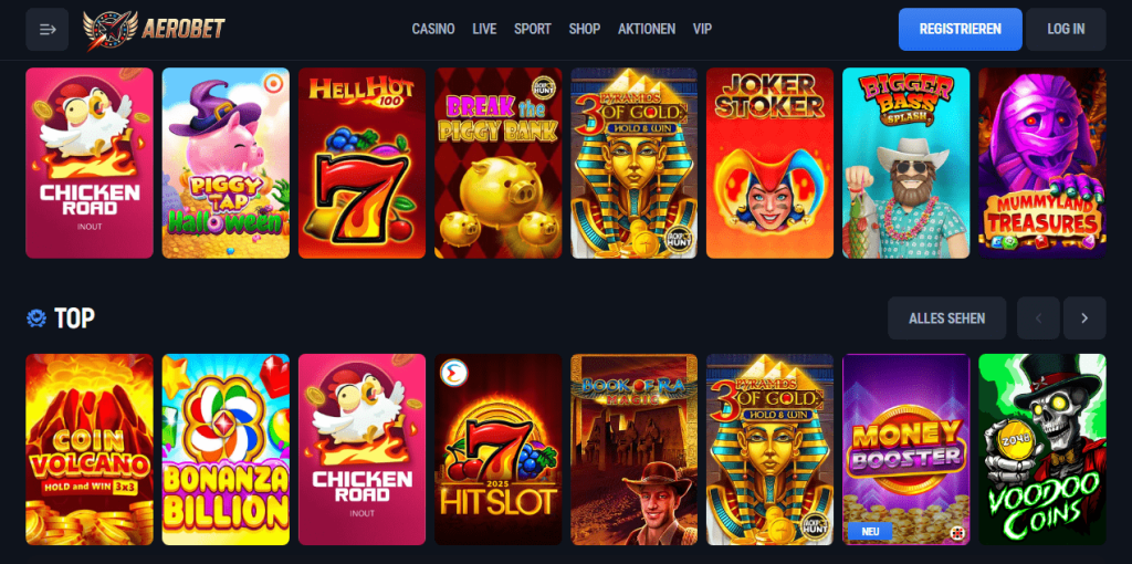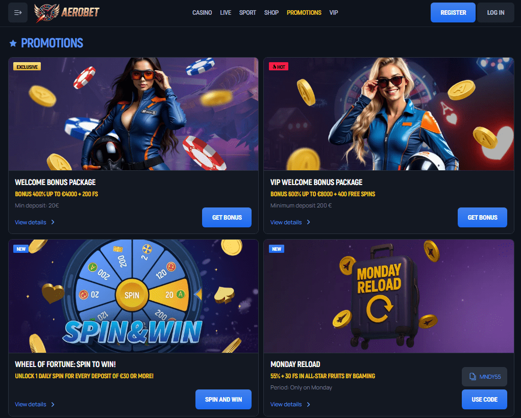 Blant de mest populære spillene finner vi Sweet Bonanza, Hell Hot 100, Book of Gold: Multichance, Chicken Road og Joker Stoker. I tillegg oppdaterer AeroBet jevnlig spillbiblioteket sitt med nye utgivelser og populære crash-spill som Aviator og CosmoX. Kasinoet arrangerer også sesongbaserte turneringer og slot-races der spillere kan konkurrere om ekstra premier. Mange av de nye spillene kan testes i demomodus, slik at brukerne kan utforske spillmekanikkene før de satser ekte penger.