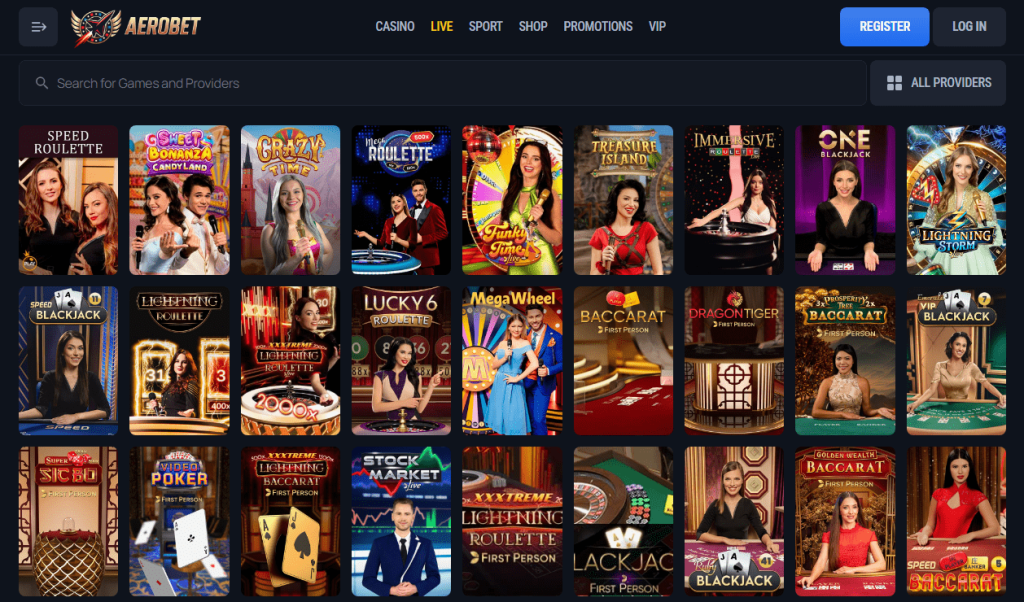 Topp 10 Live Dealer-spill på AeroBet Casino